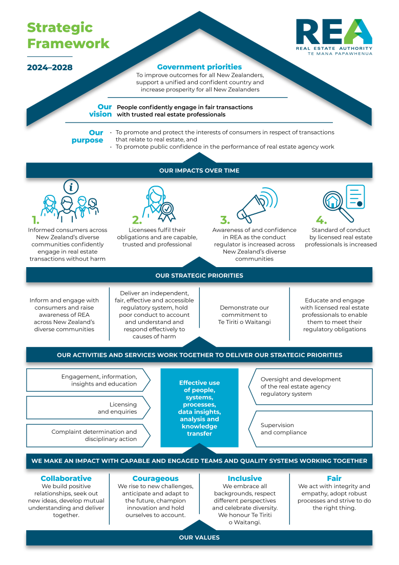 REA is successful if people in New Zealand can confidently engage in fair transactions with trusted licensed real estate professionals. This means that all people involved in real estate transactions are well informed and feel they can trust the real estate professionals involved.